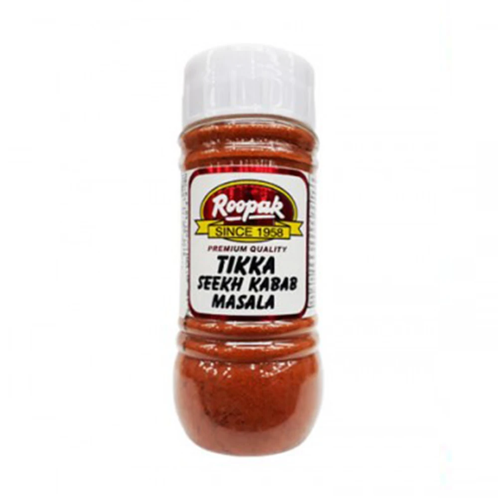 Mix 1 kg minced lamb, half cup oil & four teaspoon Roopak tikka seekh kabab masala leave aside for three hours to marinate. Make small meat balls about 100 gms each & thread each meatball through a skewer put the seekh kabab on a very low heat of coal or oven sprinkle the roopak kabab seasoning & lime juice.