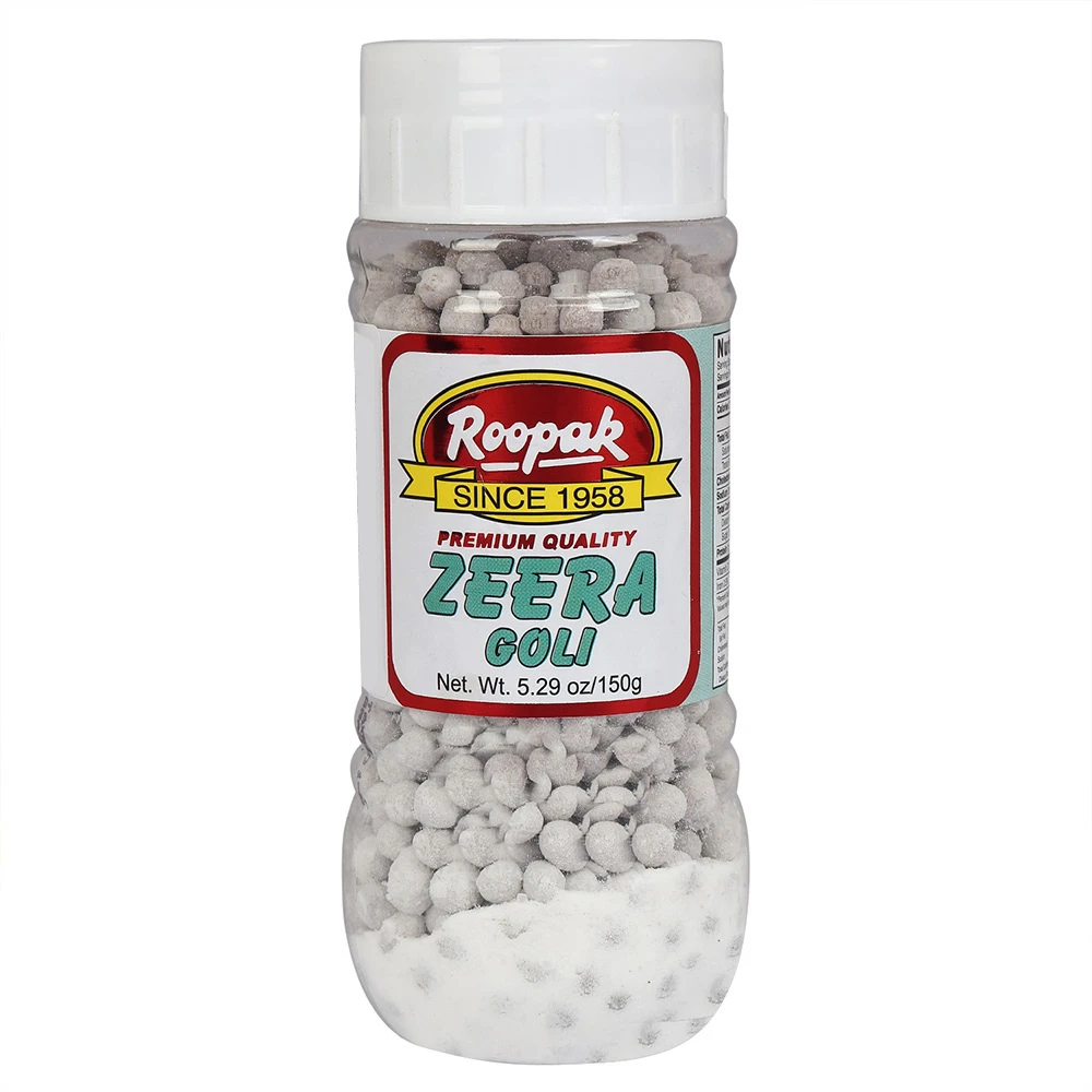 Roopak Since 1958 prepares all its mouth-fresheners and related products with maximum care. Our FSSAI certified zeera goli in India is prepared using rich quality ingredients such as Refined Sugar, Dry Mango Powder, Cumin, Iodized Salt, Black Pepper, Dry Ginger, Lemon Extract, Black Salt, & Long Pepper. Apart from its 100% pureness, it makes sure to leave its mark in your kitchen with its unique taste. It is manufactured responsibly, using the highest quality of ingredients and market practices.