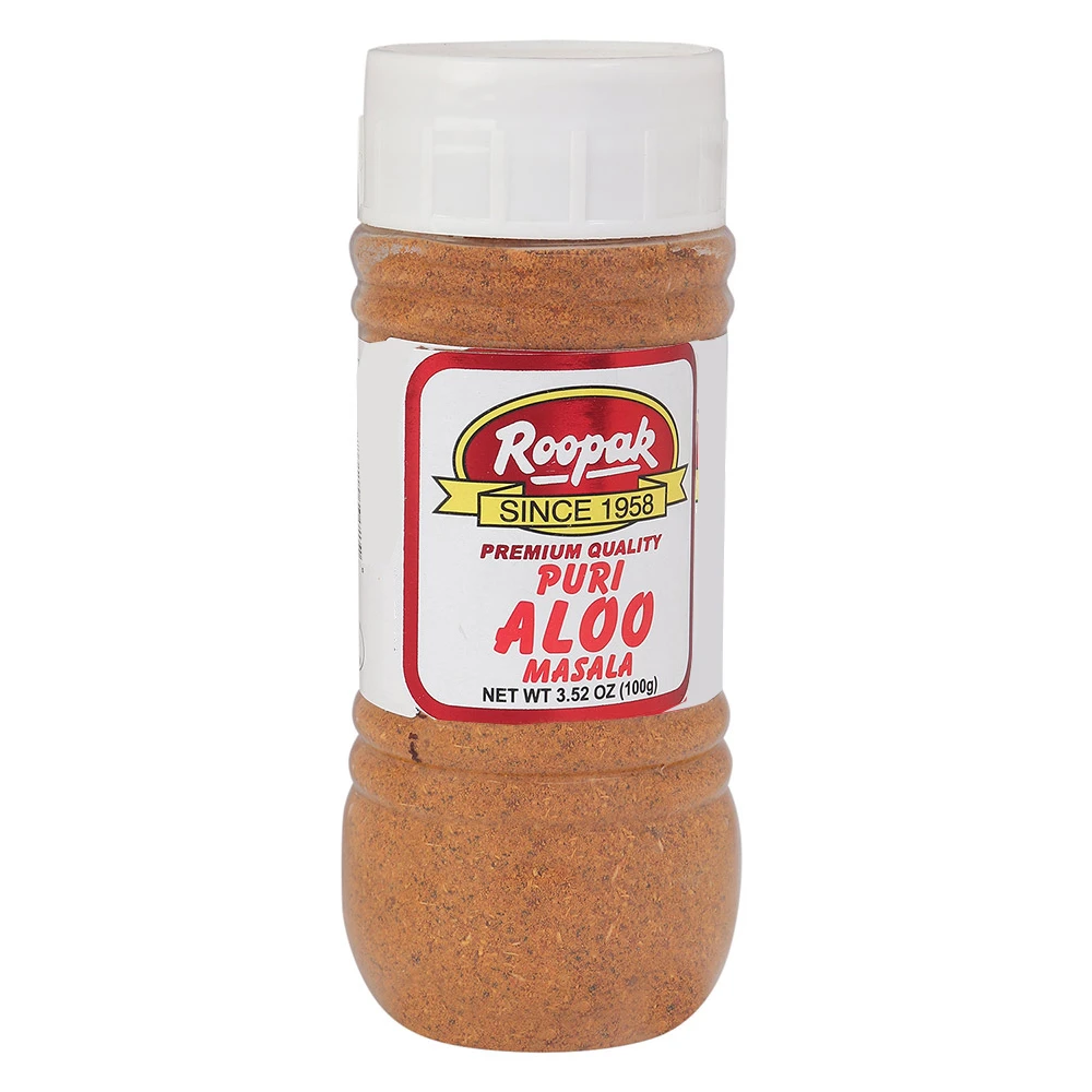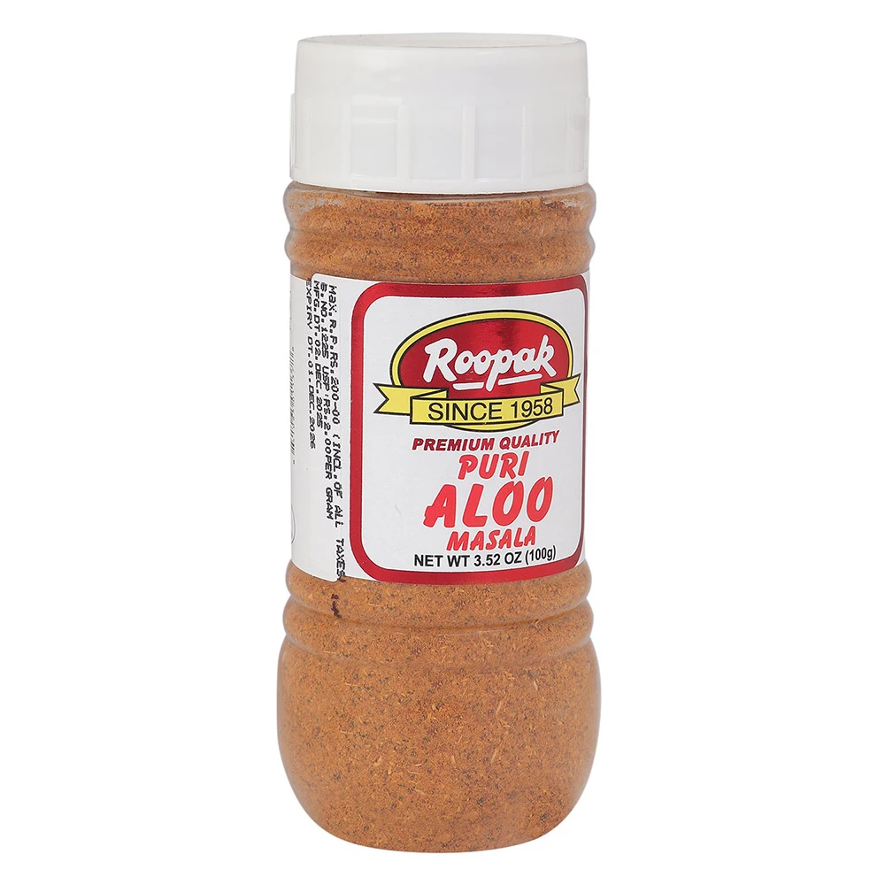 Cook two cup tomato puree in four table spoon of oil till separates from puree. Add one cup yoghurt (of smooth consistency) and four chopped green chilles. cook for three to four minutes till the mix comes to a smooth paste. make paste (by mixing four tea spoon ROOPAK PURI ALOO MASALA in one cup water) and add to the puree & yoghurt paste.cook & stir for five minutes on low flarne.Add five cup of water and four potatoes (cut to small. pieces say 1 cms X 1 cms) Cook on low flame till the potatoes becomessoft. Garnish with green coriander leaves. Sprinkle Roopak shahi Garam Masala for flavour, taste & aroma.